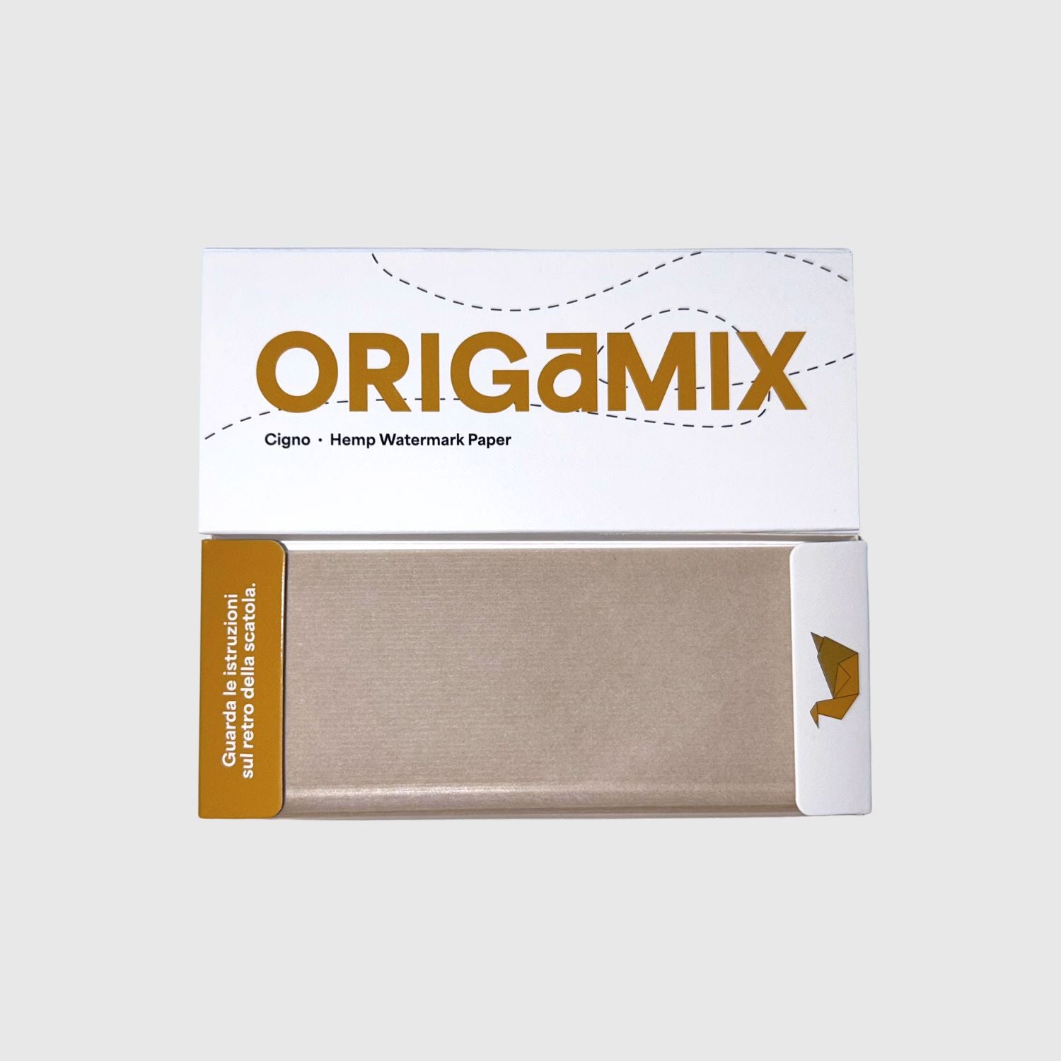El Origamix Cigno es la versión premium de la colección. Confeccionado en cáñamo sin blanquear y decorado con filigrana, asegura un quemado lento y uniforme, ideal para sesiones largas. Su color marrón claro refleja su carácter natural, mientras que su textura más resistente ofrece firmeza al liar. El sabor es prácticamente neutro, con un sutil matiz terroso característico del cáñamo.