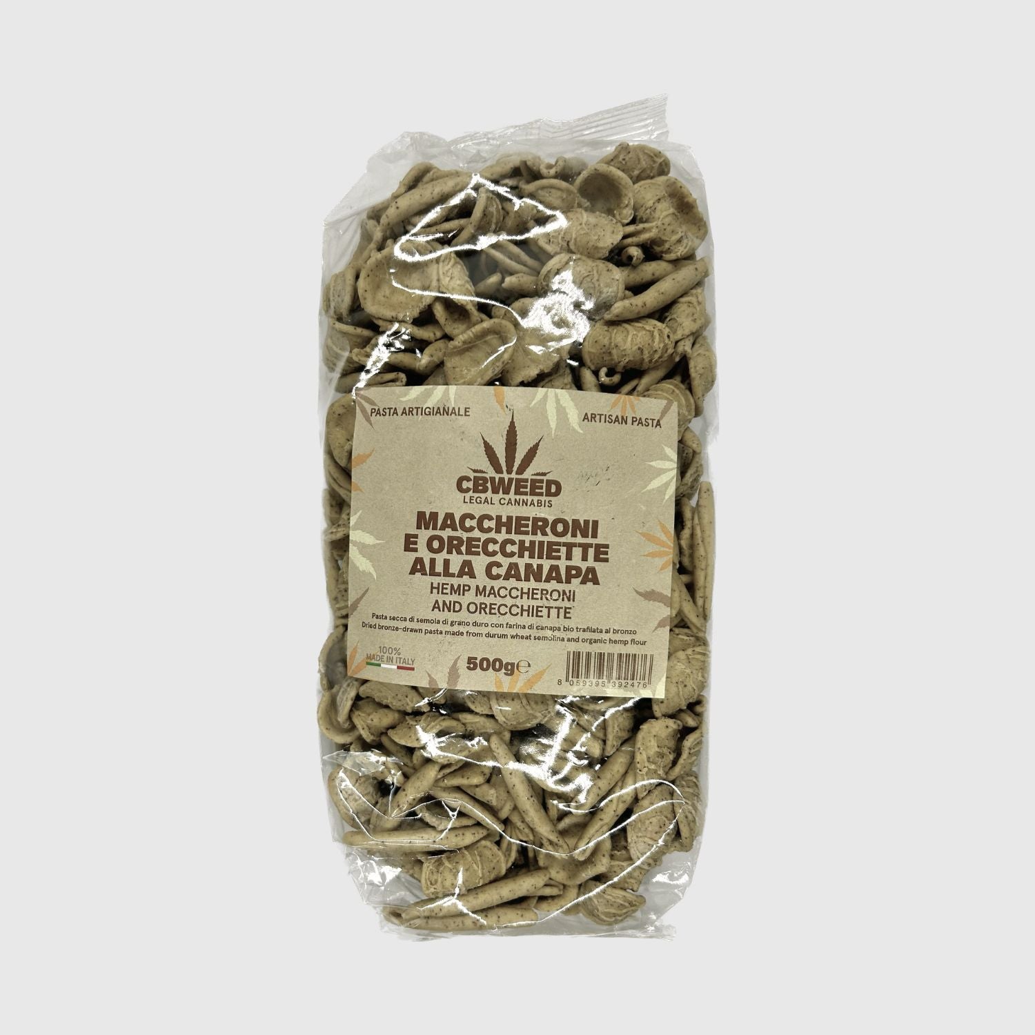 Sémola de trigo duro, harina de semillas de cáñamo sativa (5%), agua. ALÉRGENOS PRESENTES: trigo. ALÉRGENOS POTENCIALES: Cereales que contienen gluten. TABLA NUTRICIONAL: 100g Valores energ. 1615 Kj/ 382 Kcal Grasas 2,6 g de lo cuales grasas saturadas 0,2 g Carbohidratos 73 g de los cuales Azúcares 1,3 g Proteínas 13,1 g Fibras 6,9 g Sal 0,01 g