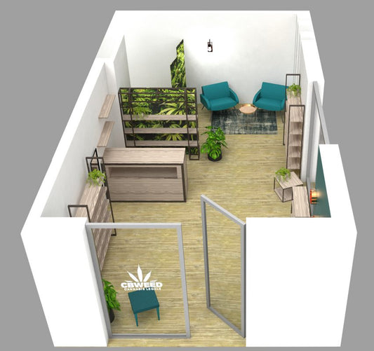 Están diseñados por un técnico interiorista de la empresa, que se encarga de todo el montaje, desde el rótulo, pasando por las estanterías, desde los complementos como mesas y sillones, hasta los espejos de la marca. Los materiales y colores se mezclan de forma artesanal para asegurar el éxito de un proyecto interior completo, que satisface a la vista sin comprometer la funcionalidad. El diseño de un Cbweed Shop será manejado directamente por nuestro diseñador de interiores.