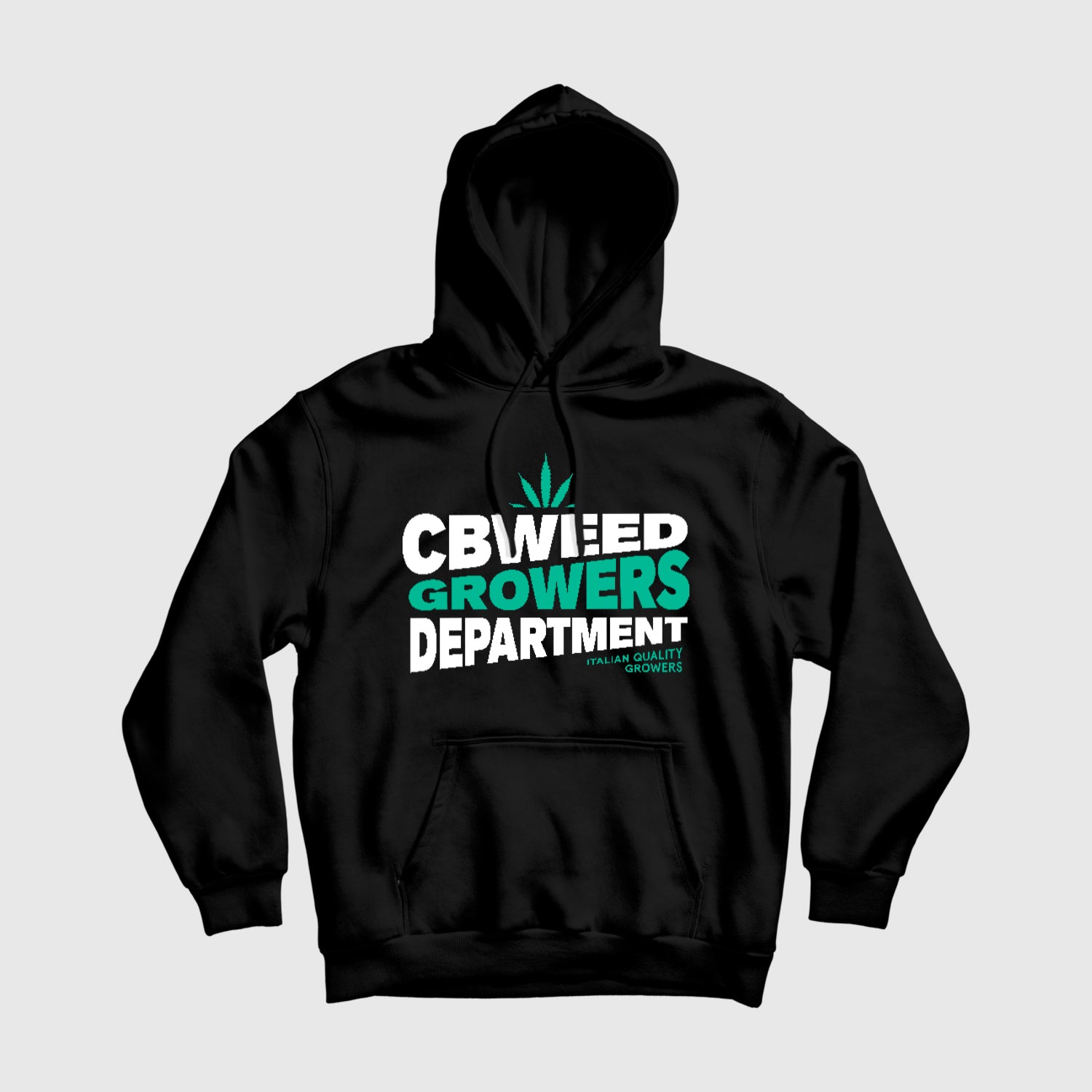 La sudadera con capucha unisex en algodón 100% orgánico de la marca CBWeed Growers Department, viene en un paquete con un diseño minimalista, pero con un efecto único y original.